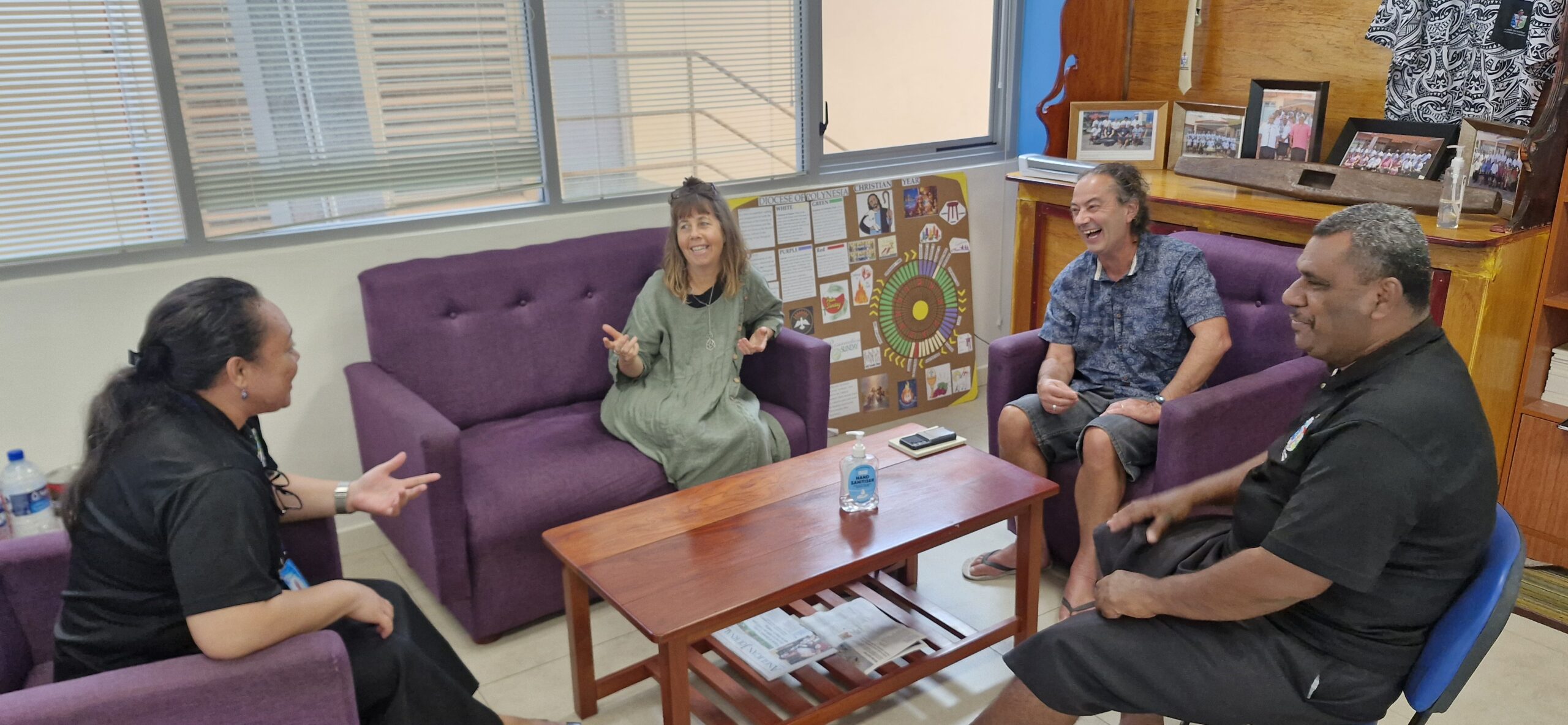 His Grace, Archbishop Justin Duckworth, together with his wife Jenny, visited the diocesan headquarters where they were warmly welcomed by Archbishop Sione Ulu’ilakepa and the diocesan team. During their visit, Archbishop Justin met with the executive staff during their weekly Heads of Department (HoD) updates, taking time to listen to the priorities and challenges faced by each ministry area. He also toured the various departments, personally engaging with diocesan staff, offering encouragement, and affirming their contributions to the mission of the church.